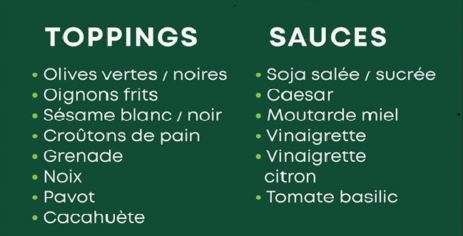 Salade et Poke Bowls à composer parmis un large choix de produits frais. Sur place ou à emporter